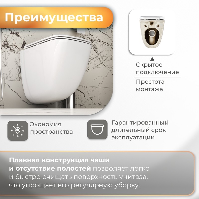 Унитаз подвесной Grossman GR-4497SQC безободковый, белый с тонкой крышкой, микролифт, смыв торнадо, закрытое дно