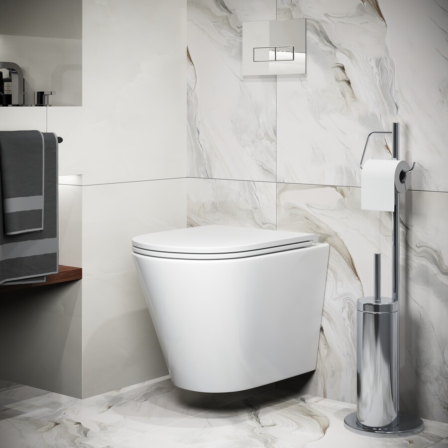 Унитаз подвесной Grossman GR-4478SQ безободковый, белый с тонкой крышкой, микролифт, смыв торнадо