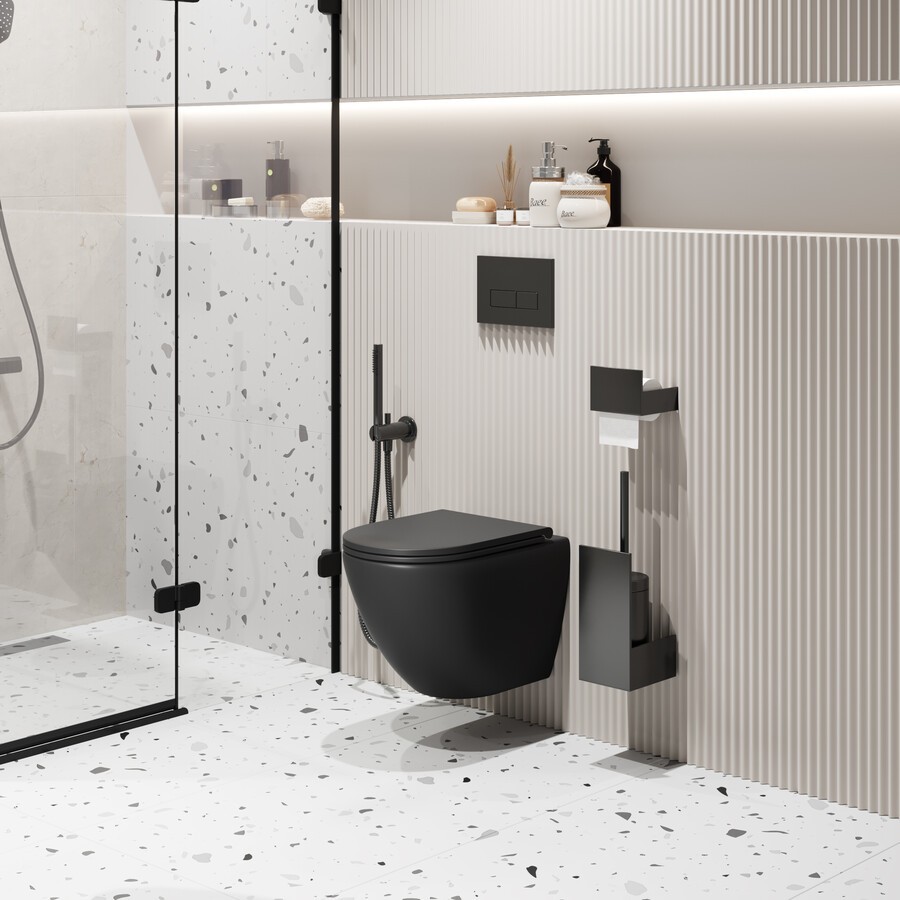 Унитаз подвесной Grossman GR-4455BMSQ безободковый, черный матовый с тонкой крышкой, микролифт, смыв торнадо