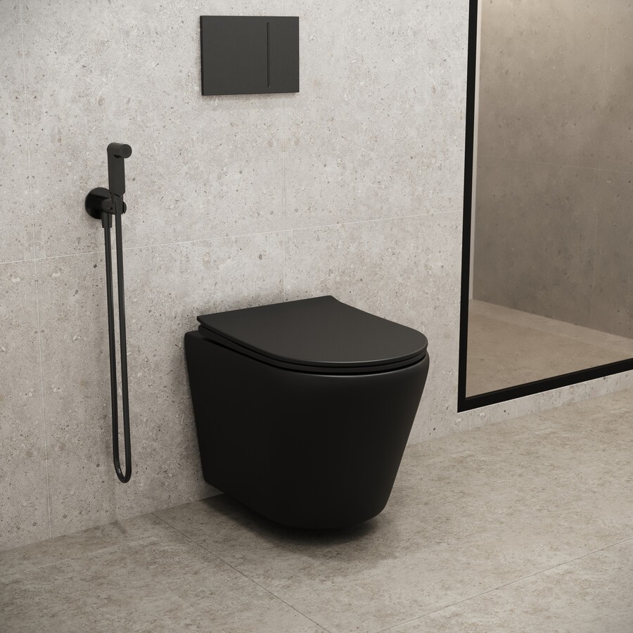 Унитаз подвесной Grossman GR-4477BMS безободковый, черный матовый с тонкой крышкой, микролифт
