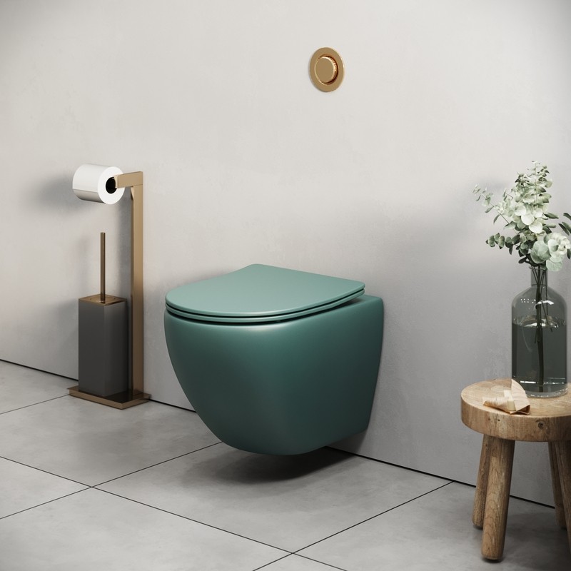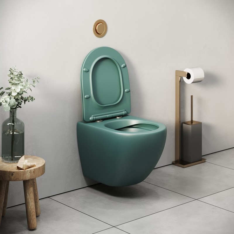 Унитаз подвесной Grossman Color GR-4455OLMS безободковый, зеленый матовый с тонкой крышкой, микролифт