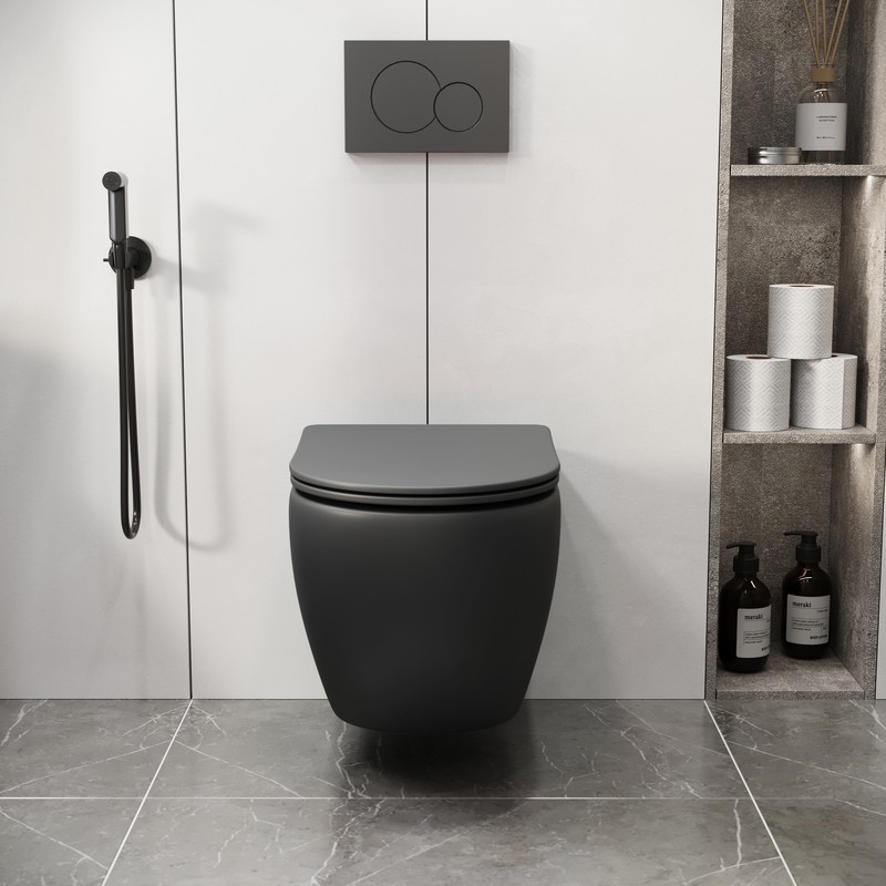 Унитаз подвесной Grossman GR-4411BMSQ безободковый, смыв торнадо, черный матовый с тонкой крышкой, микролифт