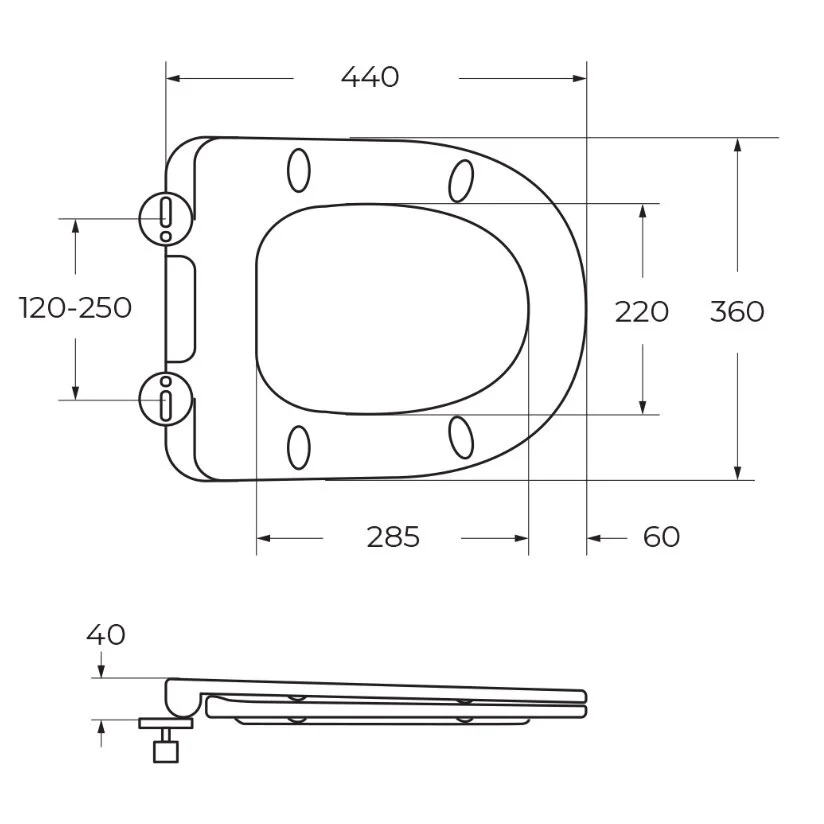 - Жесткая крышка-сиденье из дюропласта, быстросъёмная, с механизмом Soft Close