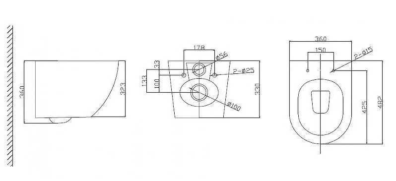 - Размер унитаза: 36 x 48.2 x 36 см