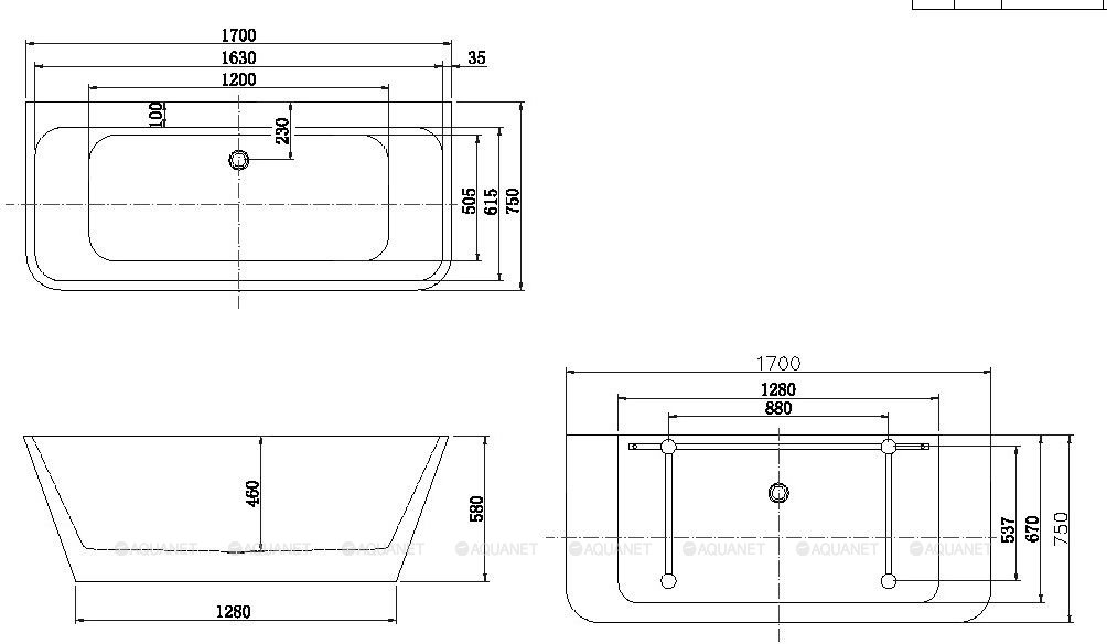 Акриловая ванна Aquanet Family Perfect 170x75 13775-GW