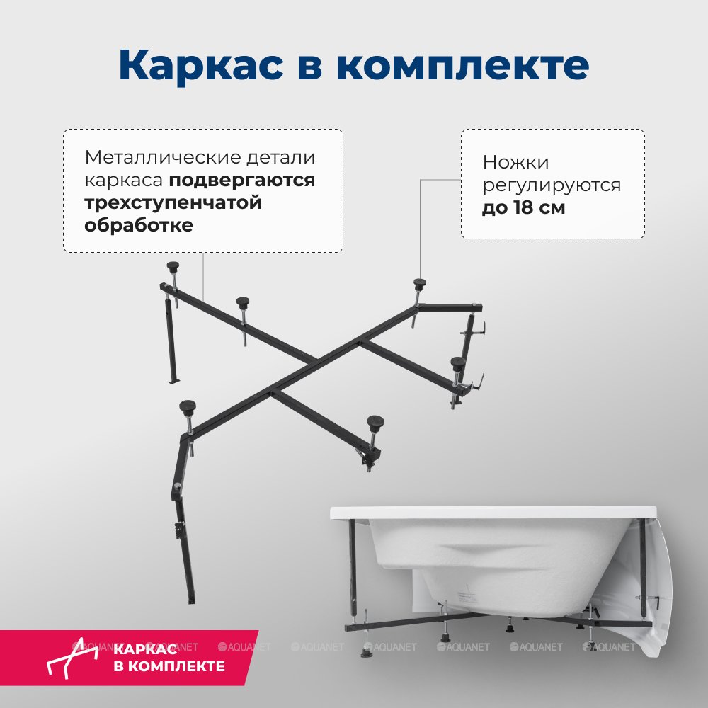 Акриловая ванна Aquanet Vitoria 130x130, с каркасом