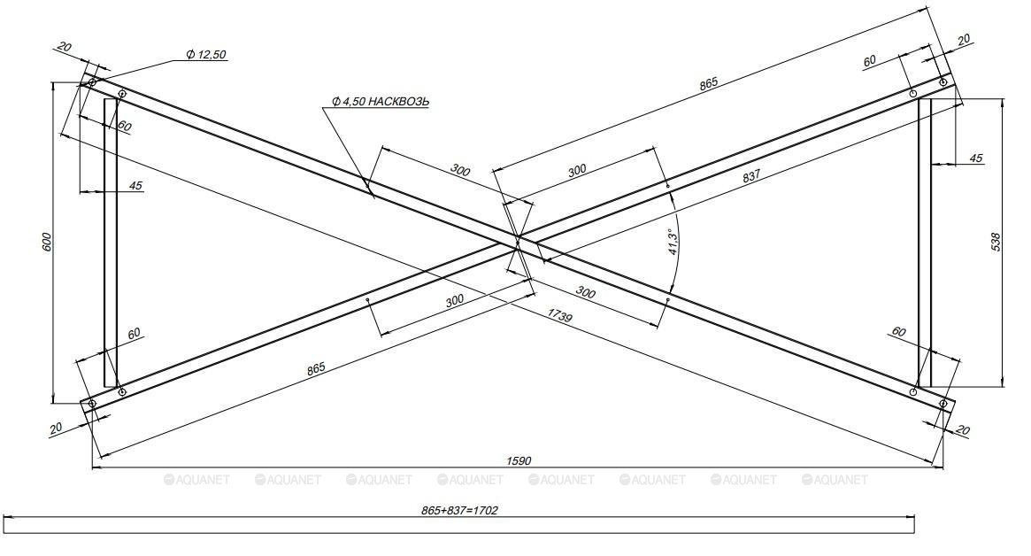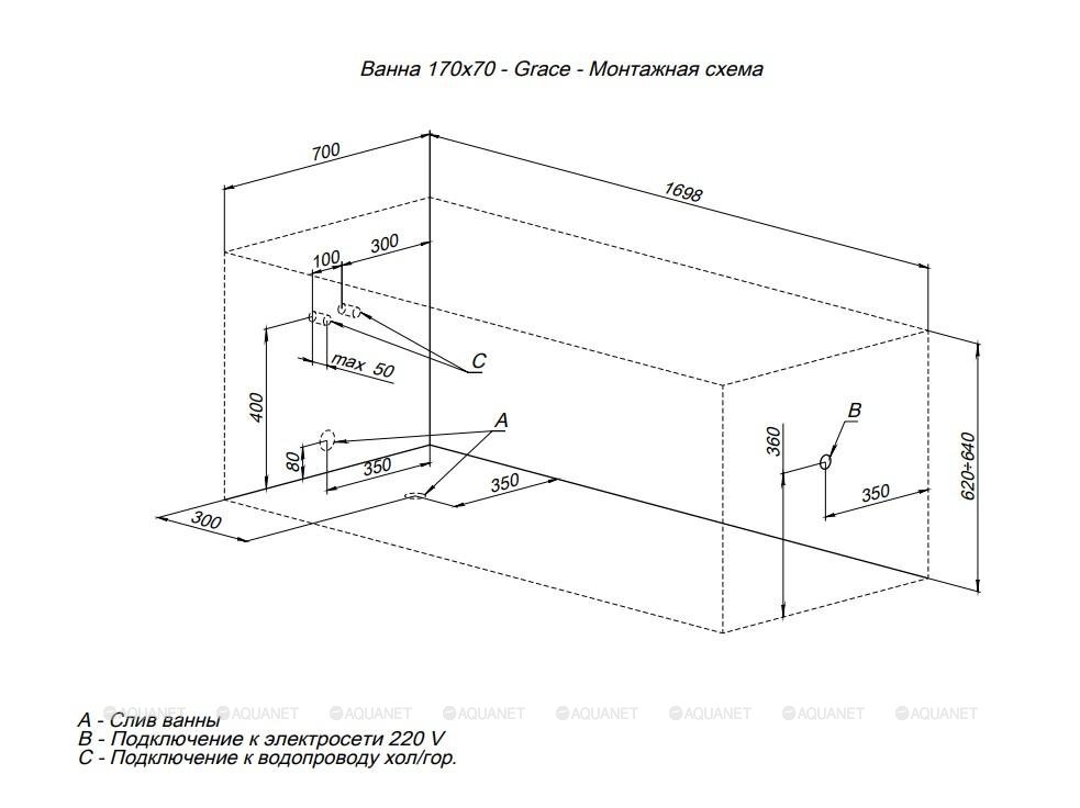 Акриловая ванна Aquanet Grace 170x70, с каркасом
